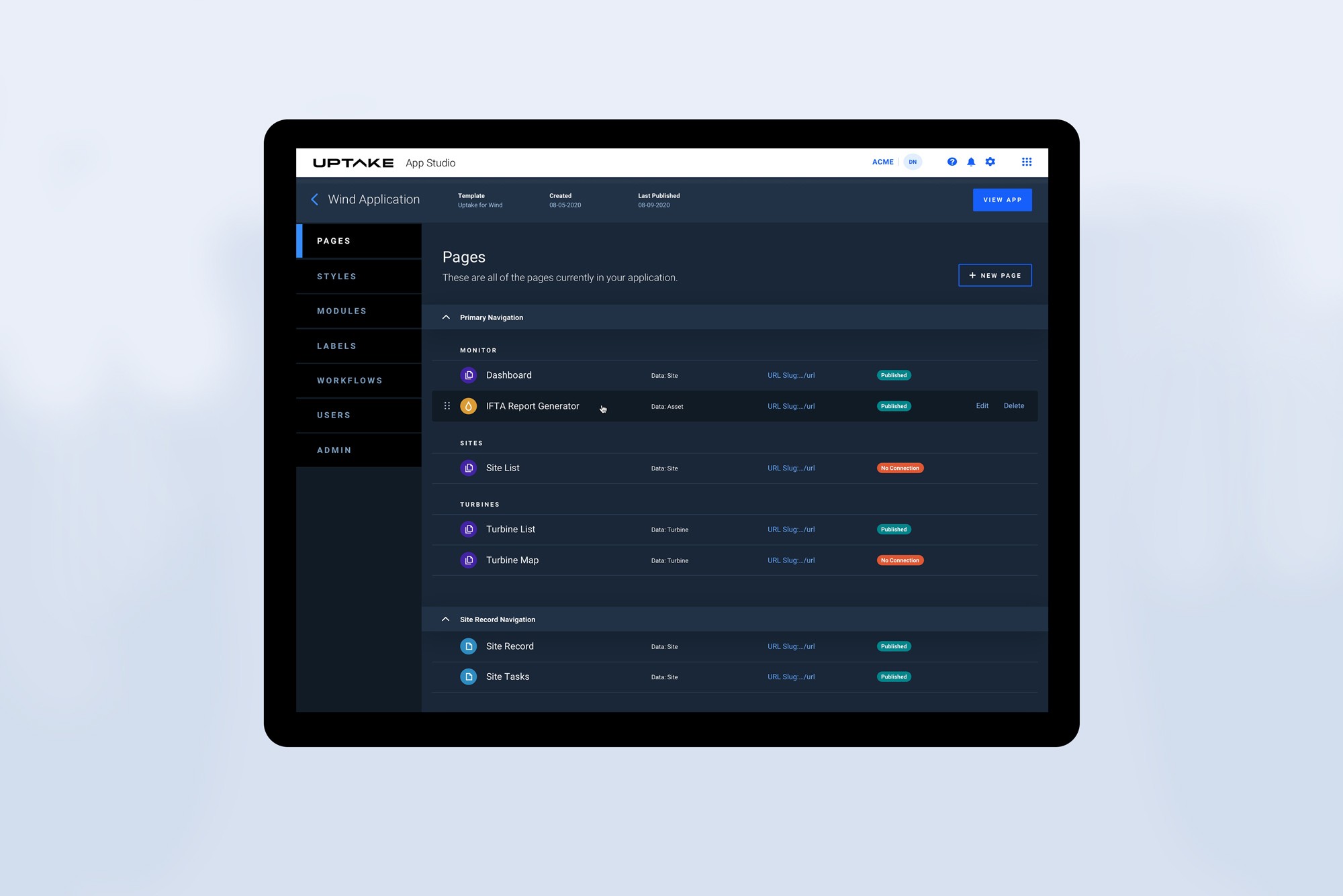 As users started building more apps, feedback revealed that they liked thinking in pages — so we created a list view for monitoring each page within their new app.