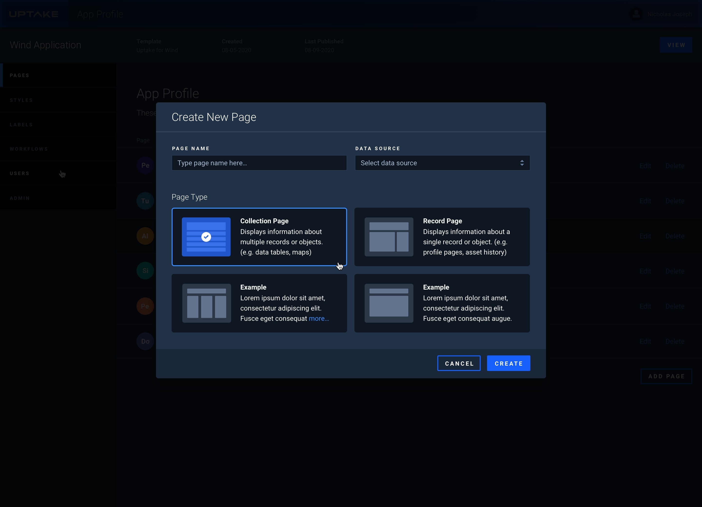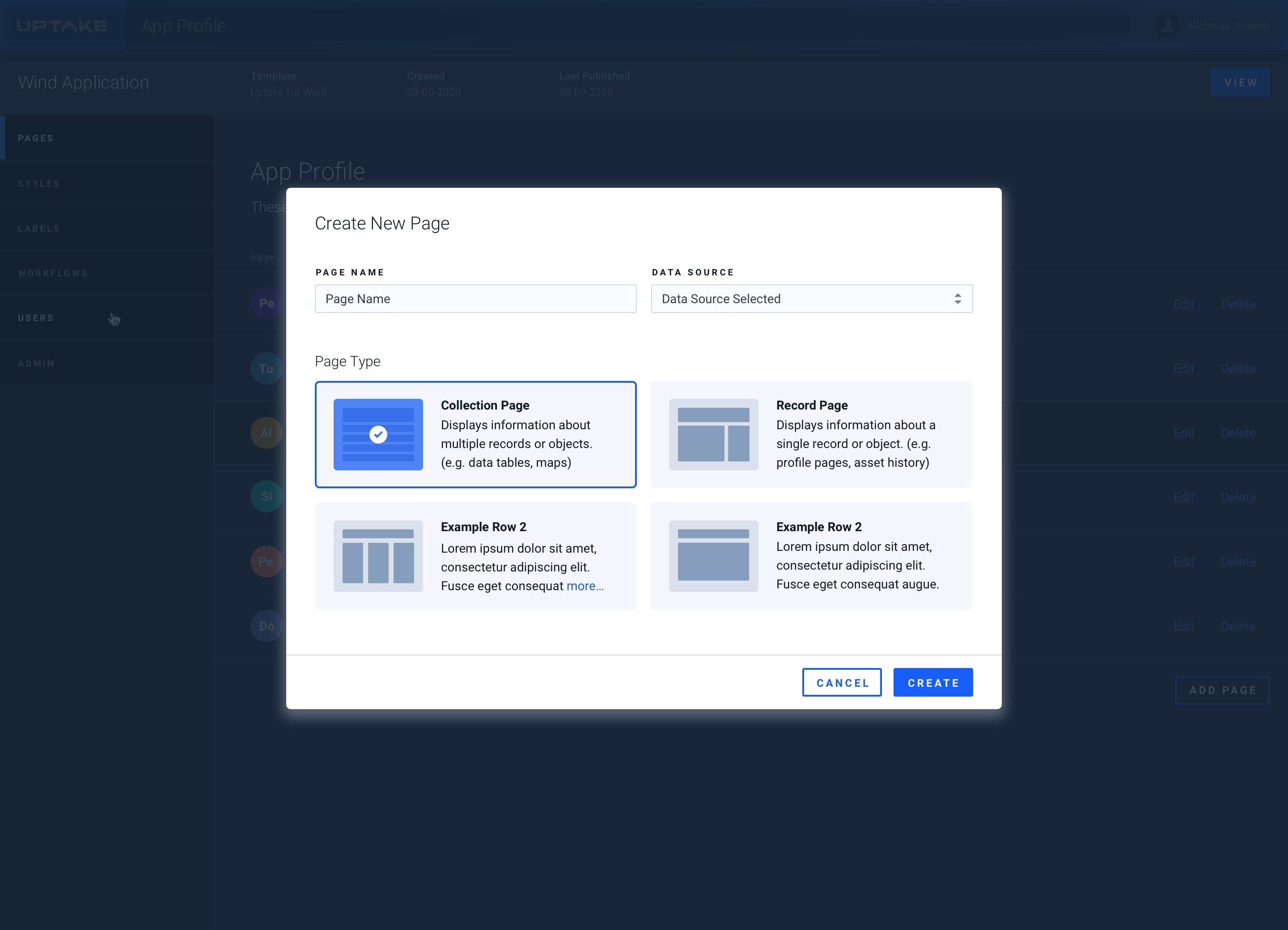 Page Creation Modals