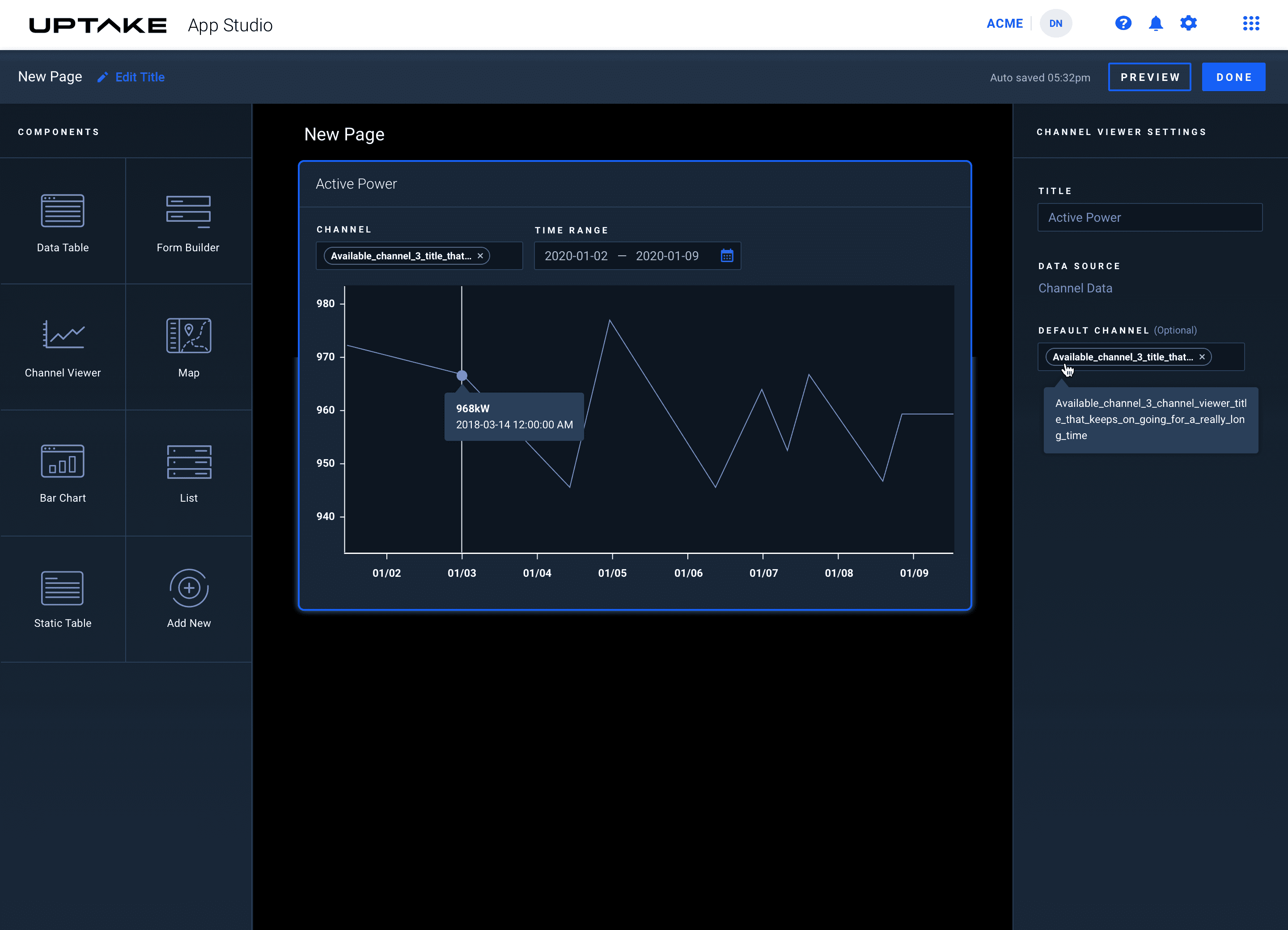 Creating a builder canvas one step at a time — a single-widget POC. We were primarily testing the best approach to rendering individual widgets in real time: How hard was it to provide data channels, connect them, and render?