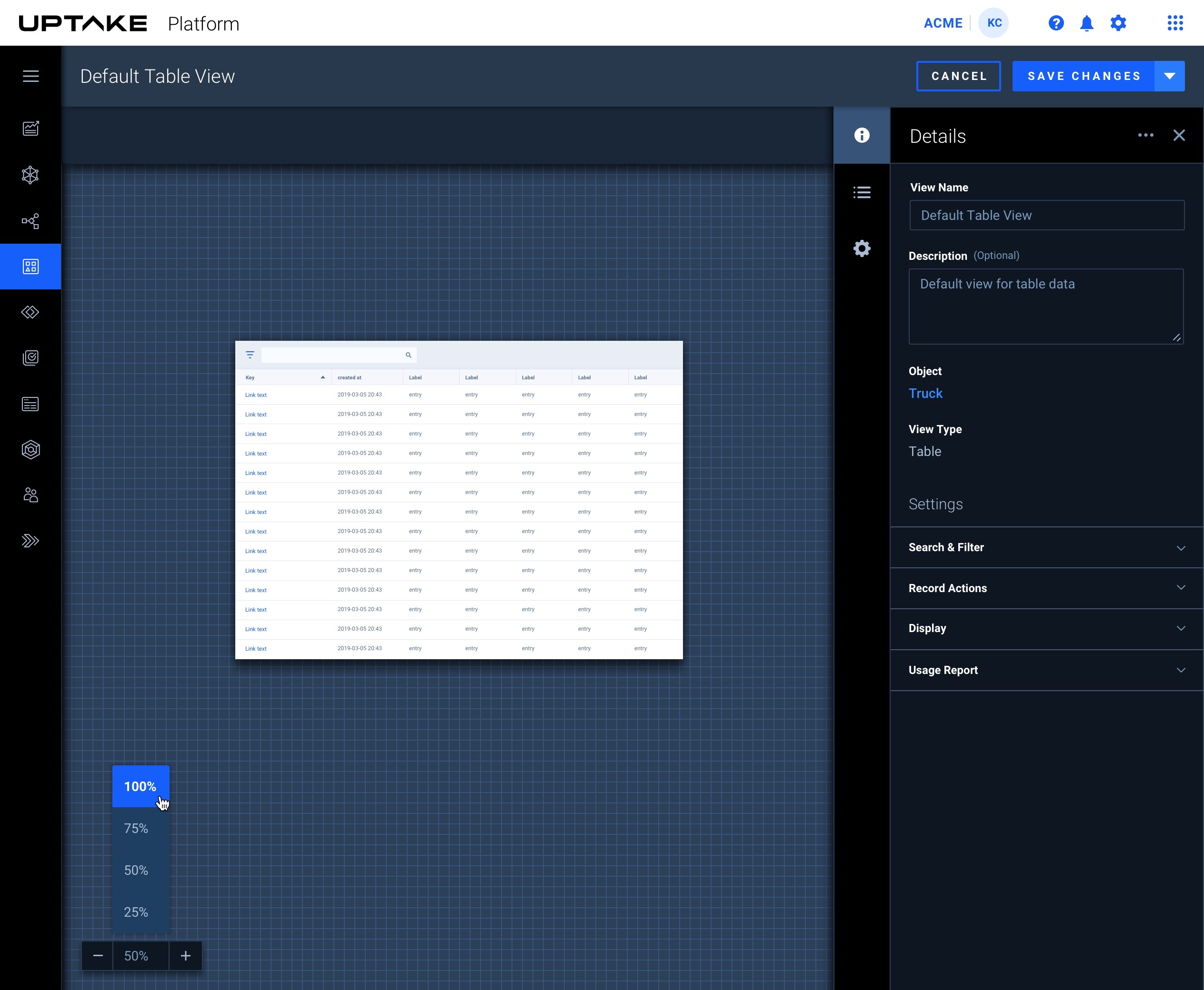 We advanced the canvas to support zooming and expanding for linking across app pages.