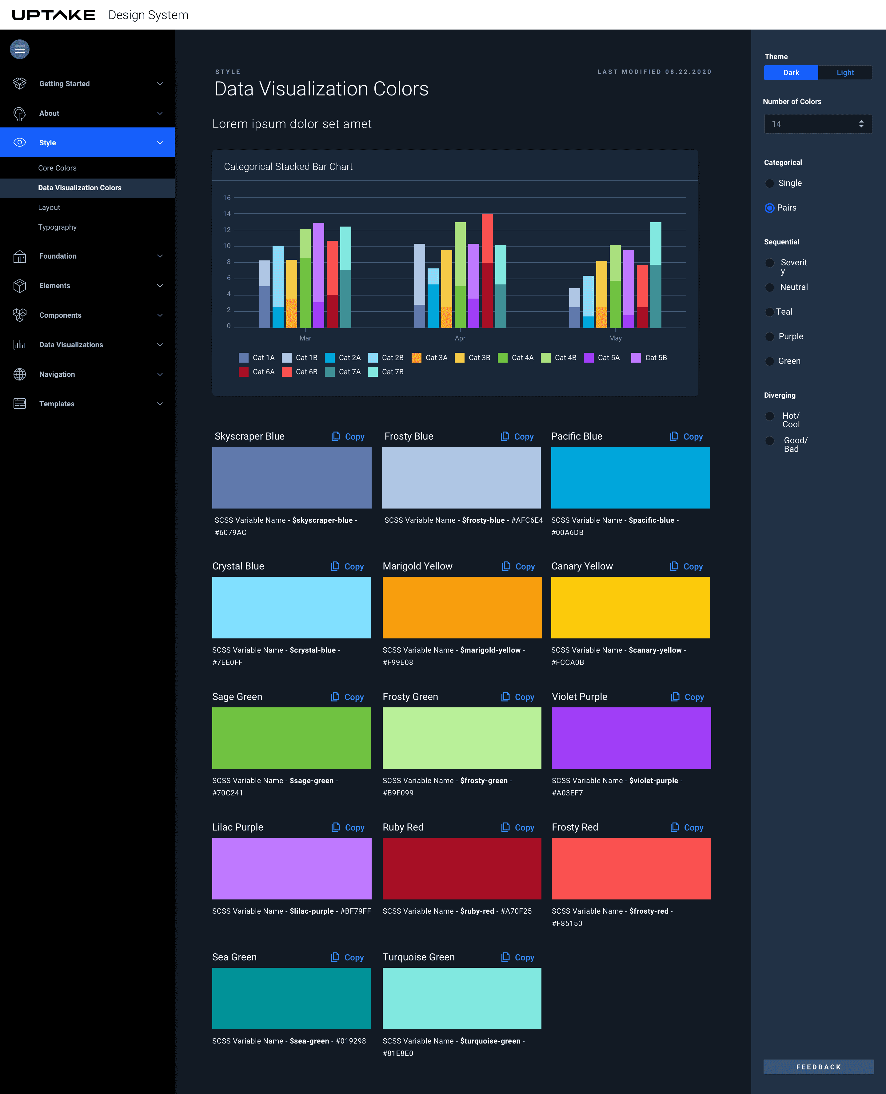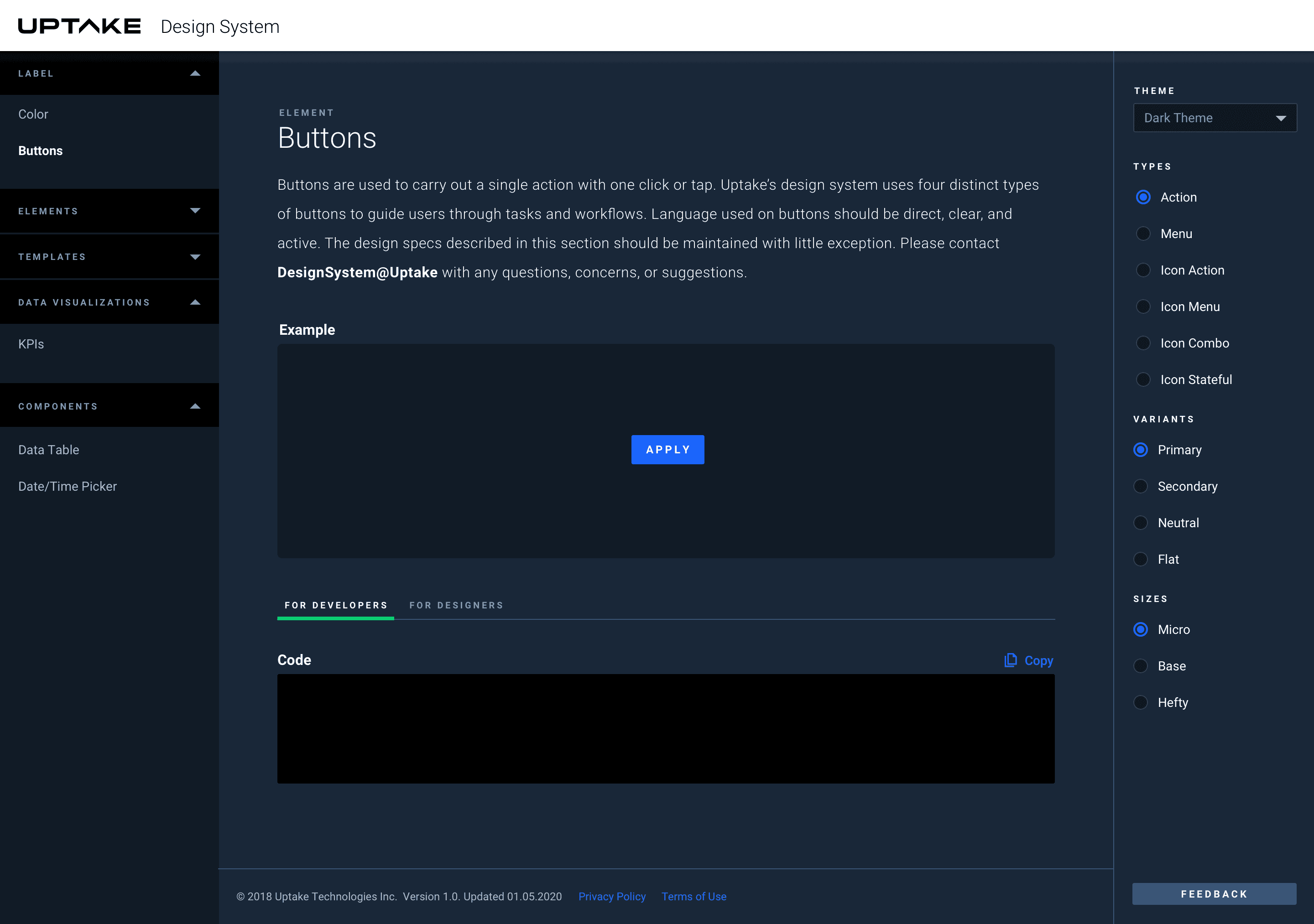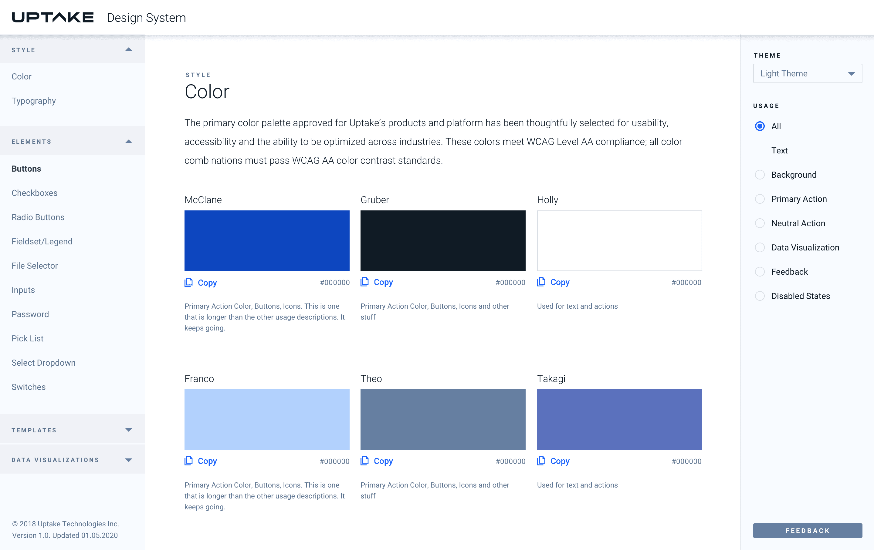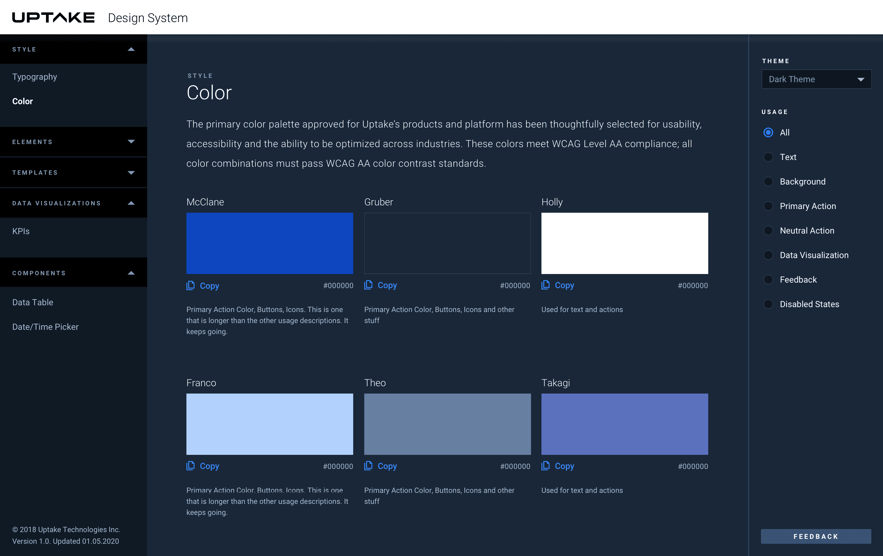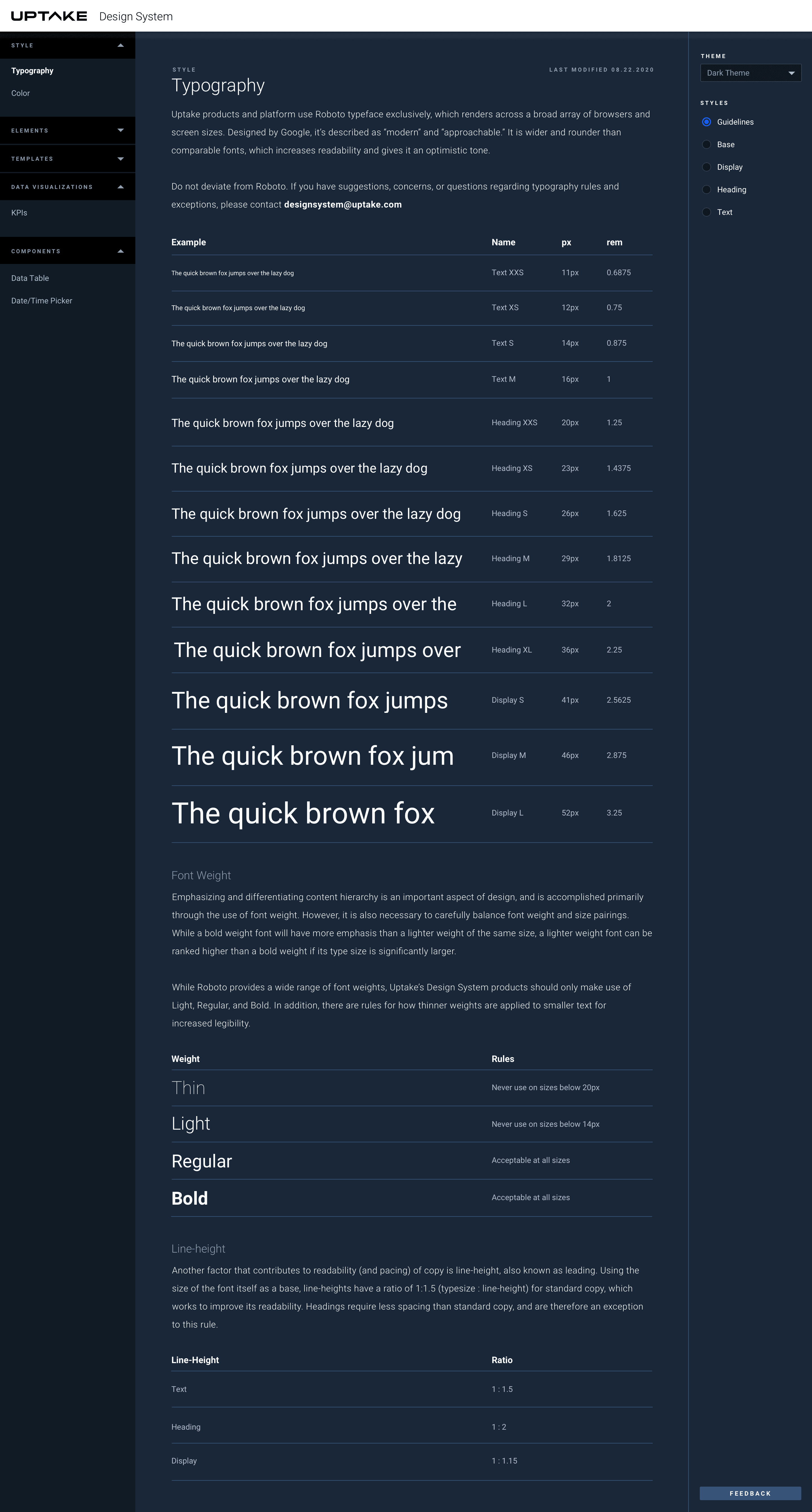 Now that we had an initial style guide, we needed an official way to easily disseminate information. Even with a document stating that #0d46bf was our primary blue, we watched teams color-pick, approximate, and slowly drift from a simple variable like that. We needed a place where users could confidently access the most current information—without worrying about “zombie” styles.
