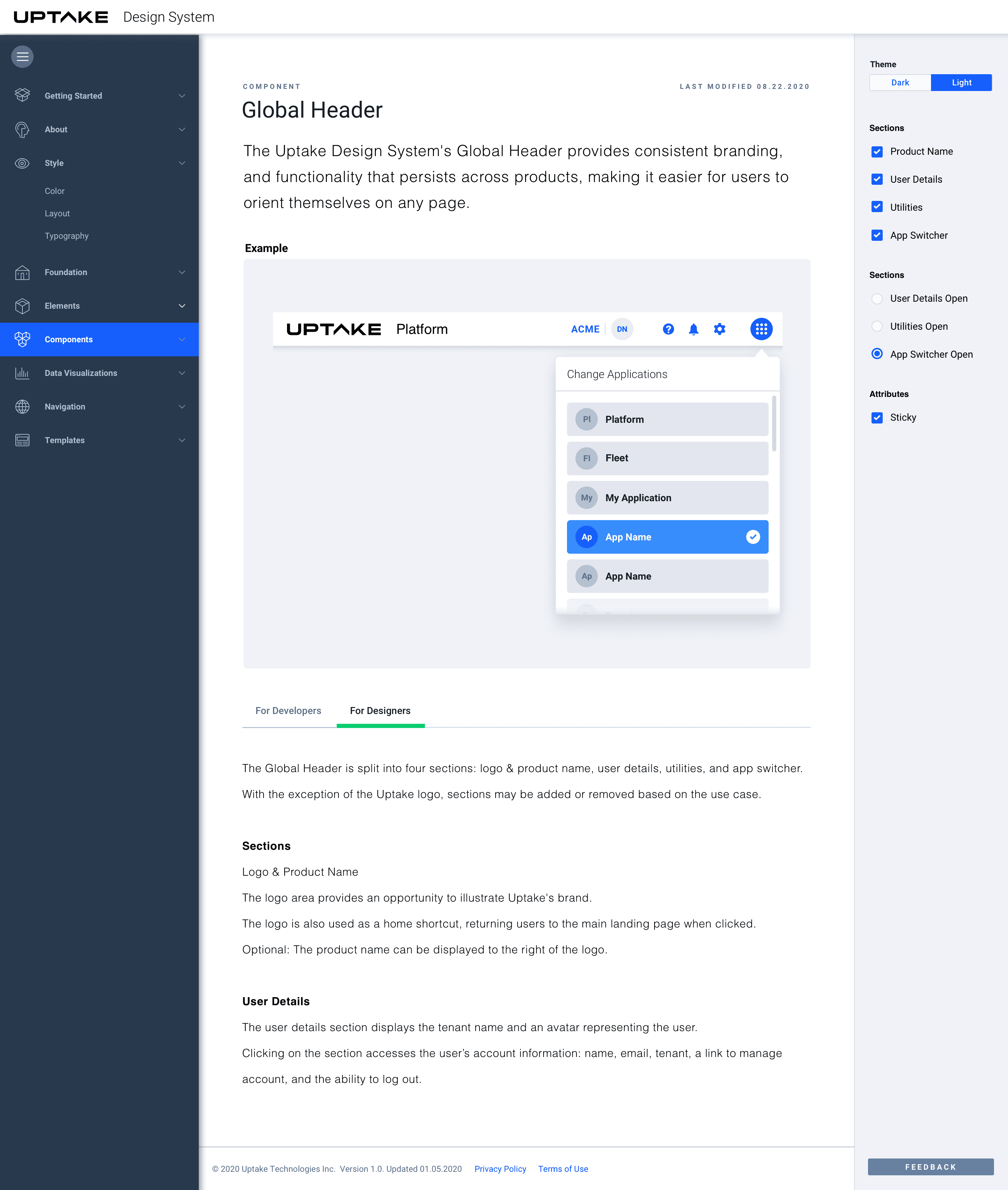 The documentation site needed to be an internal resource through close collaboration with product owners, developers, and designers. It provides essential guidance—including design principles, best practices, accessibility standards, templates, and code—to support consistent product development.